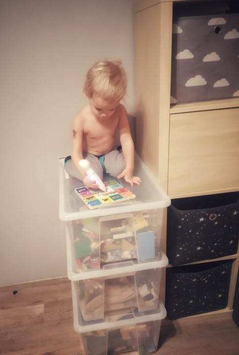 To tak člověk nakoukne do pokojíku, jak si dítě hezky "čte" z Kouzelného čtení. Přísahám, že židle doma máme!