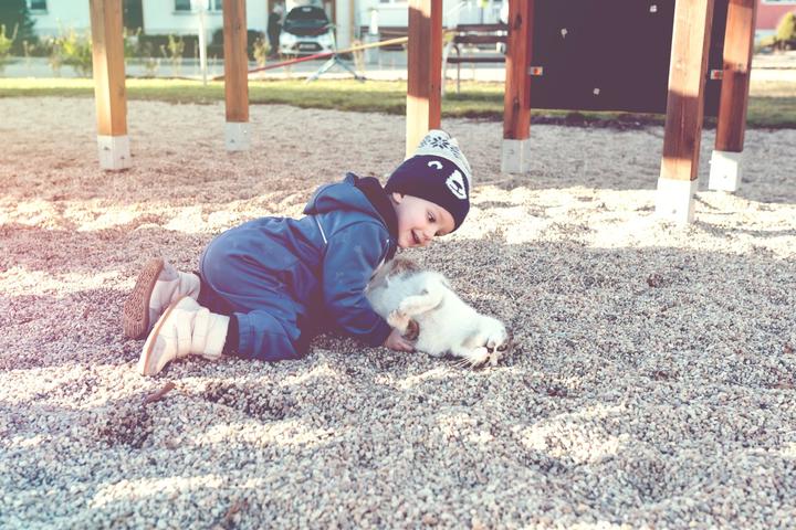 Beník je takový náš malý terorista. Když vidí zvířátko, automaticky jásá: "Tuliiiiit!" A dnes to třeba dopadlo takhle. Kočička je sousedů a má děti moc ráda a tulení si narozdíl od našeho pejska užívala. 😝
