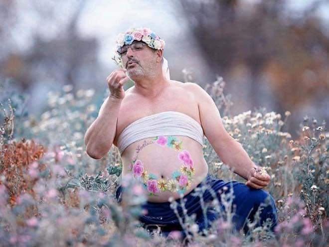 Manželce zaplatil focení s bříškem, ona se ale fotit odmítla, a tak, když už to měl zaplacený, nechal se vyfotit sám. 🤣🤦♀️