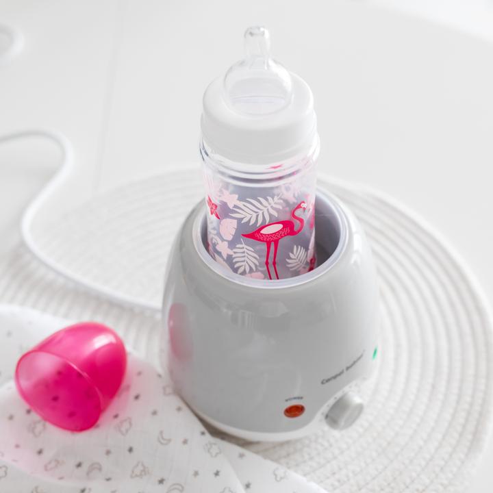 Maminko, podívej jakou krásnou lahvičku s plameňáky nám na to testování ohřívače poslali! No tyhle slova tedy zatím Anežka nepoužila 🙂 bylo to jen mamamama 😝 Zatímco dcerka věděla ihned jak s lahvičkou naložit, já jsem se s ohřívačem musela trochu seznámit, protože to pro mě je novinka. Když jsem se zapojila do soutěže #test_canpolbabies , měla jsem trochu obavu, zda se nám do ohřívače naše baculatější lahvičky vůbec vejdou. Ale nebyl problém, ohřívač je naštěstí dost široký. Takže jsem mohla vodu na UM v klidu ohřát. A jak připravujete UM vy? Taky si nejdřív ohřejete vodu a pak namícháte nebo ohříváte rovnou namíchané?