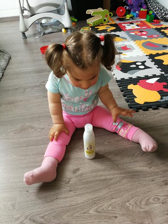 Mladší dceru jsem dnes okoupala, použila jsem mycí emulzi - příjemně svěže voní. Má praktický dávkovač - pumpičku - velmi dobře se roztírá po tělíčku, na tělíčku nepění, dobře se smývá - je velmi příjemná 😍