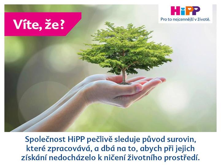 Trvalá udržitelnost vyžaduje způsob života a práce, který nadměrně nevyužívá, neplýtvá ani neničí přírodní zdroje, které jsou základem lidské existence. Proto se v HiPP chováme šetrně k přírodě a je pro nás nepřijatelné ničení životního prostředí. Více: http://goo.gl/9pvkng