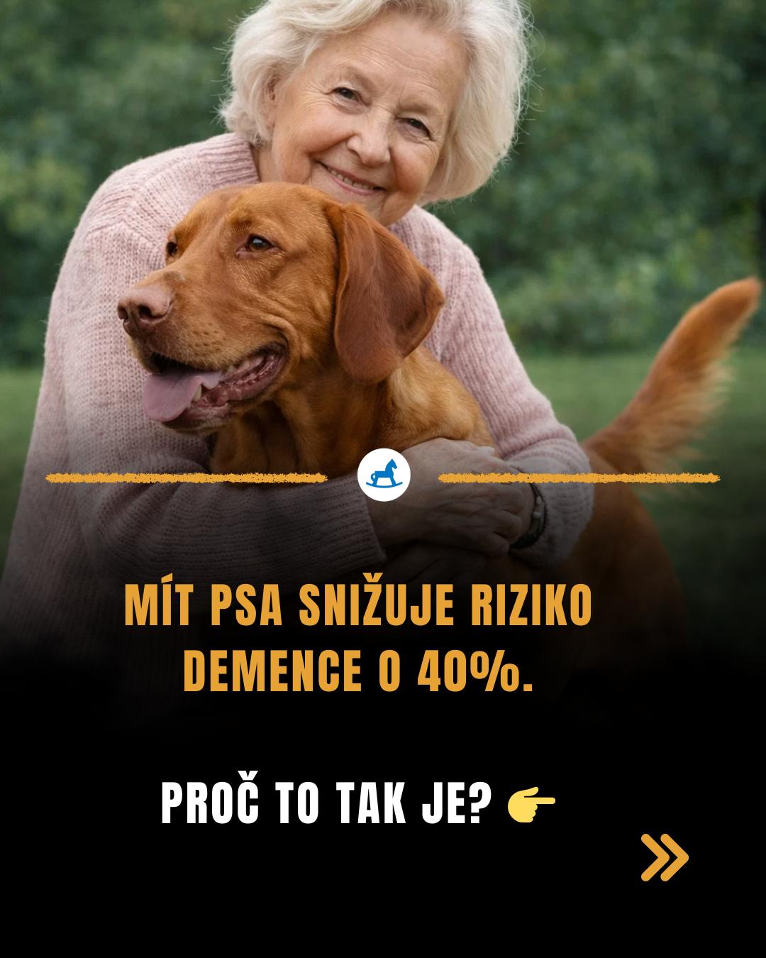 V roce 2017 publikoval prestižní časopis Scientific Reports výsledky gigantické studie. Vědci ve Švédsku sledovali neuvěřitelných 3,4 milionu dospělých po dobu 12 let. Výsledek? Vlastnictví psa bylo spojeno až se 40 % nižším rizikem demence, přičemž nejvýraznější efekt se ukázal u lidí, kteří žijí v domácnosti sami.