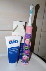 Dcera pastu používá v kombinaci se sonickým kartáčkem.