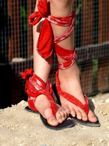Textilné pásky sa dajú uviazať na milion spôsobov, kožená kvetina je odnímateľná, podrážka dvojitá tuhá hovädzina, no ešte dosť barefút, lepená. 20 - 29 cm.