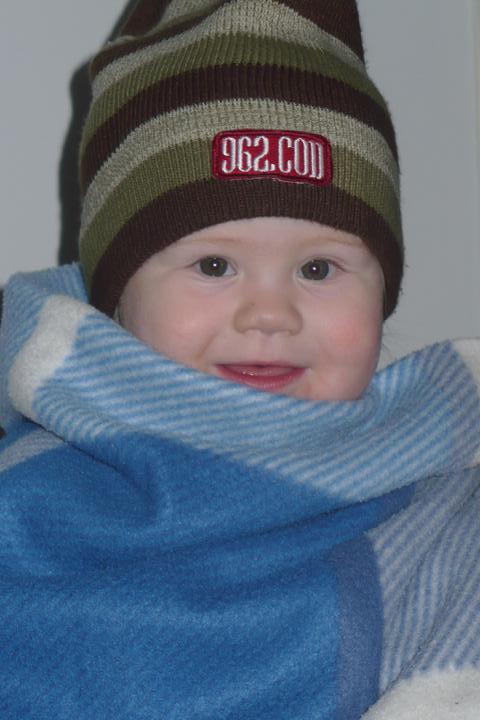 Obléká to samé + mikinu, kombinézu, čepici, rukavice. Líbá mě na hlavičku.