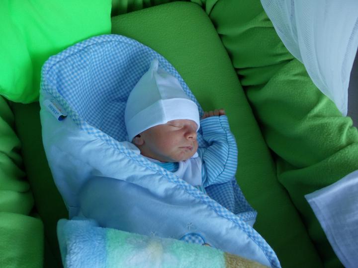 Kubíček si dnes stoupl v postýlce.Říká mama.