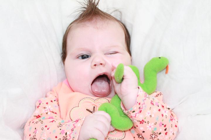Moje malá princeznička se naučila převracet na bříško a úplně sama, první jí tam vadila ručička a teď, už si jí sama vytáhne...