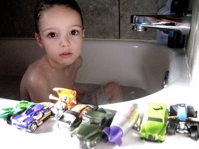 Pokaždé, když napouštím Vašíkovi vanu, postaví se k ní a už si tam hází hračky. Dnes jsem na chvíli odešla a než jsem se vrátila, stačil tam naházet kromě delfína, žáby a parníčku ještě půl koše špinavého prádla 🙂