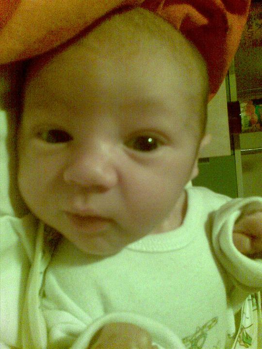 Tak se mi Daník dneska přetočil ze zad na bříško. Seděla jsem u něj na gauči a kouknu se na sekundu jinam a on si najednou leží na břiše.