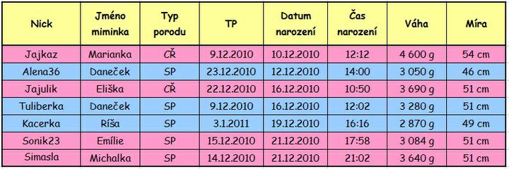 V pátek 14.1. 2011 jsem byla objednaná v 11:00hodin poprvé do porodnice na kontrolu. Ve středu jsem byla ještě u svojí doktorky, ale jelikož se pořád nic nedělo a v pátek už jsem měla termín, odeslala mě teda tam. Manžel mě vyzvedl doma, zavezl tam a čekal. Nejdřív mě v nemocnici chtěl nechat a přijet až mu pak zavolám, ale protože jsem vůbec nevěděla, jak to tam chodí a jak dlouho tam budu, zůstal nakonec se mnou. Asi ve 12hodin jsem se dostala konečně na řadu. Sestřička mi udělala monitor, na kterém nebyly žádné velké změny. Srdčíko v pohodě a kontrakce jenom velmi malinké. Pak jsem znova čekala skoro hodinu než jsem se dostala na řadu k panu doktorovi. Ten mě prohlédl a říká:" Paní, vy nemáte žádné bolesti?" Tak říkám, že ne. "No, ale vy už začínáte rodit". To jsem měla opravdu šok 🙂 Tak prý jestli tady mám věci a manžela, že se můžeme přesunout na porodní sál. Naštěstí věci jsem měla v autě (manžel říkal, že auto to uveze, že je raději vezme). Když mě sestřička vedla na porodní sál a v čekárně řekla manželovi, že má zajít do auta pro věci, že jdeme rodit, tak mu málem vypadly oči z důlku 😀