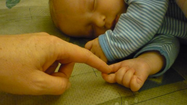 včera nám byly dva měsíce, smějeme se na celý svět a mooc nám chutnají ručičky!
