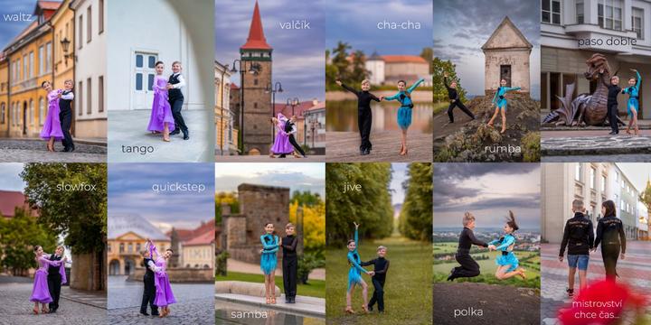 Nyní se díváte na kompletní sérii fotek. Na 11 fotkách najdete vždy jeden z tanců, který tančí, a fotky jdou za sebou přesně v takovém pořadí, v jakém se tančí na soutěžích: