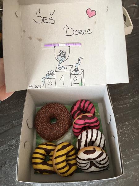 U prvniho sem mu vyrobila poukazku na miminko a u druheho jsme dostali kazdy na Vanoce celou krabici Mily a ja ji nejedla a on porad at mu ji dam. rekla jsem ze mu ji dam az budem tehotni. Delala sem si test v den kdy sel na operaci. A rano kdyz mel byt na lacno sem mu ji dala pred koupelnu. On vysel a pta se jestli si delam srandu, kdyz to ted nemůže. Tak sem mu musela pripomenout nasi domluvu :D na kterou zapomnel ze :D na krabici bylo z napisu Mila udelany milacku a k tomu nase inicialy plus otaznik. To asi prehlidl :D a pro rodinu mel syn na sobe tricko budu velky braska. Ale museli sme jim rict at se na nej podivaji protoze všichni taky asi slepi :D