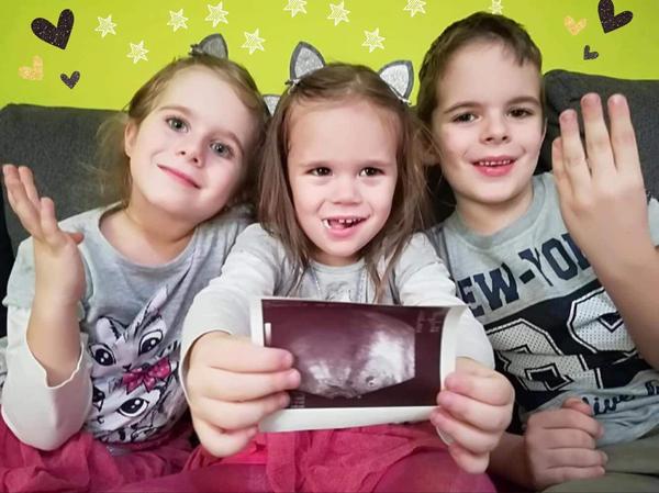 A se čtvrtým jsme tak nějak nechali děti, aby ten "šok" oznámily 😀 vyfotili jsme je s fotkou z Utz a to pak předaly...