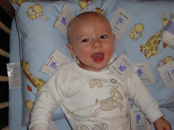 2. Vyfoťte svoje dítě spolu s produktem Multi-Mam Compresses.