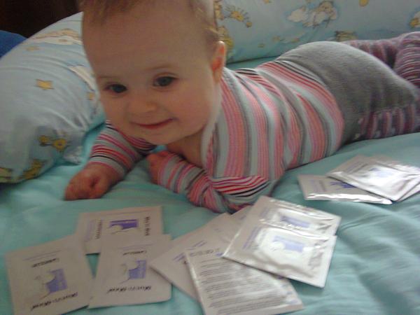 Naše malá Klárka má zkoumavé období, takže ani Multi-mam Compresses nebyly ušetřeny🙂