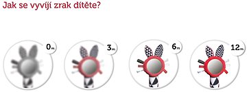 - Až do 4. měsíce vidí pouhou změt šedých skvrn, dobře reaguje na kontrastní vzory.