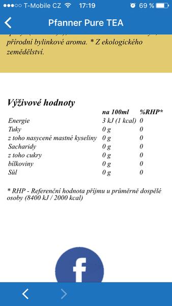 100 ml čaje Pfanner Pure Tea obsahuje jen 1 kcal. Což je super. Konečně nepřeslazený čaj 🙂