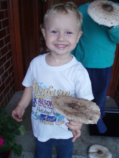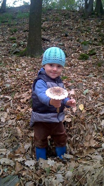 Ještě nám přeje krásné počasí, tak i hříbky už konečně rostou. Synové je moc rádi sbírají, obalují a pak papají.