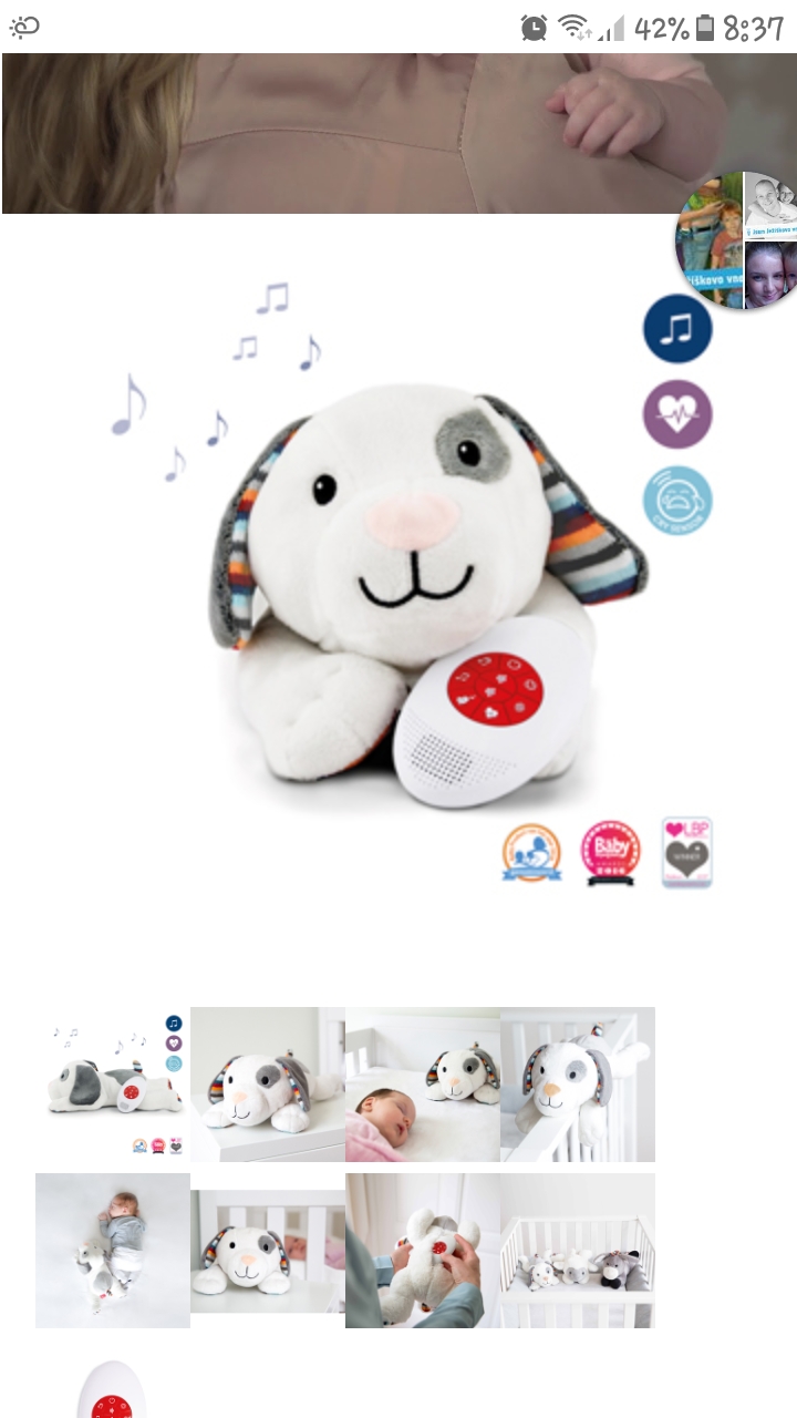 Heboučká a měkoučká šumící zvířátka s tlukotem srdce jsou určena pro děti od narození. Zajistí klidné a rychlé usnutí miminka. Modul, který má každé zvířátko v bříšku vydává zvuk tlukotu srdce, bílý šum, šum přírody a ukolébavky. Modul dokáže reagovat na pláč a zatřesení.