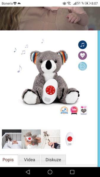 Heboučká a měkoučká šumící zvířátka s tlukotem srdce jsou určena pro děti od narození. Zajistí klidné a rychlé usnutí miminka. Modul, který má každé zvířátko v bříšku vydává zvuk tlukotu srdce, bílý šum, šum přírody a ukolébavky. Modul dokáže reagovat na pláč a zatřesení.