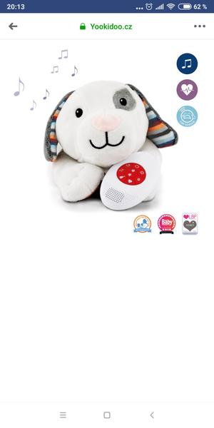 Heboučká a měkoučká šumící zvířátka s tlukotem srdce jsou určena pro děti od narození. Zajistí klidné a rychlé usnutí miminka. Modul, který má každé zvířátko v bříšku vydává zvuk tlukotu srdce, bílý šum, šum přírody a ukolébavky. Modul dokáže reagovat na pláč a zatřesení.