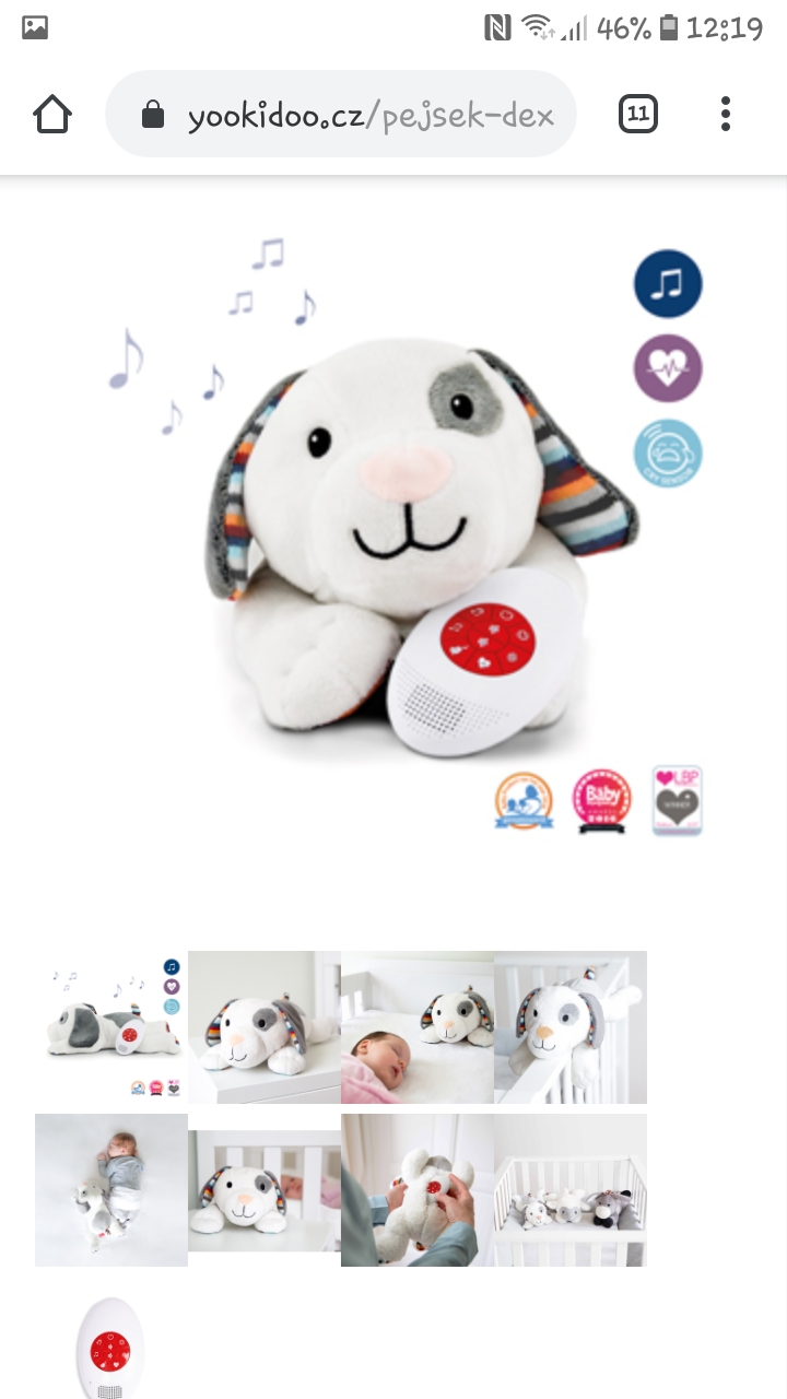 Heboučká a měkoučká šumící zvířátka s tlukotem srdce jsou určena pro děti od narození. Zajistí klidné a rychlé usnutí miminka. Modul, který má každé zvířátko v bříšku vydává zvuk tlukotu srdce, bílý šum, šum přírody a ukolébavky. Modul dokáže reagovat na pláč a zatřesení.