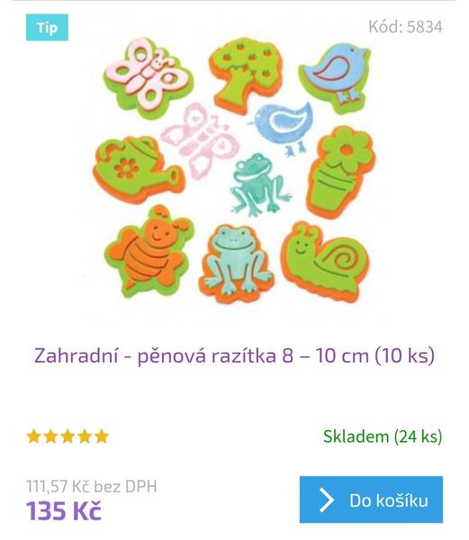 Jsme kreativní firma, která navrhuje, vyrábí a dováží spoustu tvořivého a výtvarného materiálu a sad pro děti. V našem sortimentu najdete kartonové a dřevěné výřezy, pískové sady, vyškrabávačky, sady z pěnovky a filcu, razítka, přívěšky na dotvoření, pálky, šablony z různých materiálů a komponenty jako jsou samolepící kamínky, knoflíky, přívěsky, bambulky, nýtky, oči, peří a spoustu dalších věcí na zabavení dětí. Tvořivé sady jsou rovněž vhodné jako dárek či na dovolenou.