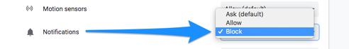 2. Otevře se ti tato nabídka. Pokud máš přímo v ní možnost nastavit Notifications (Upozornění), tak rozklikni šipku vpravo a klikni na Block (Blokovat):