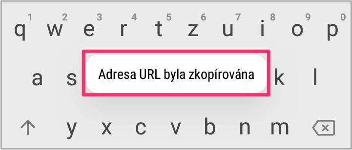 5. Dole se objeví hláška "Adresa URL byla zkopírována". Prima, to jsme chtěli 🙂.