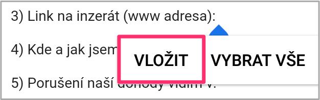 6. Jdeme link vložit, kam potřebuješ. Třeba do zprávy, kterou nám pak pošleš. Polož prst na místo, kam chceš link vložit, a několik vteřin drž.