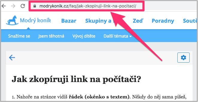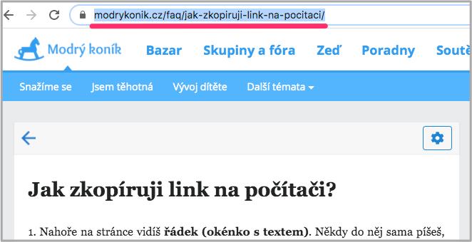 1. Nahoře na stránce vidíš řádek (okénko s textem). Někdy do něj sama píšeš, když něco hledáš na internetu. Právě tento link chceme zkopírovat a někomu poslat: