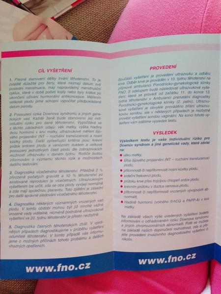 @misina01 někteří doktoři se drží svých vyš. metod. za nás starších byl ultrazvuk kolem 20 tt a hlavně se tam hledala nosní kost. Teď, místo vyšetření z krve z 16 tt, které bylo často falešně pozitivní se maminky posílají na ultrazvuk kolem 11 až 13 týdne, kde se kontroluje nosní kůstka a šíjové projasnění, díky které mu se včasně odhalí, jestli miminko nemá dauwnův syndrom. Idebírají i krev a za vyšetření se platí. V našem okrese to je 1000 Kč