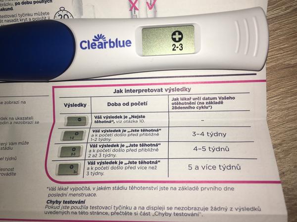 Takze kdyz test ukazuje 2-3, lekar urci tehotenstvi na 4-5. Plus minus nejaky den zejo. Za par dni ti totiz ClearBlue ukaze uz 3+.
