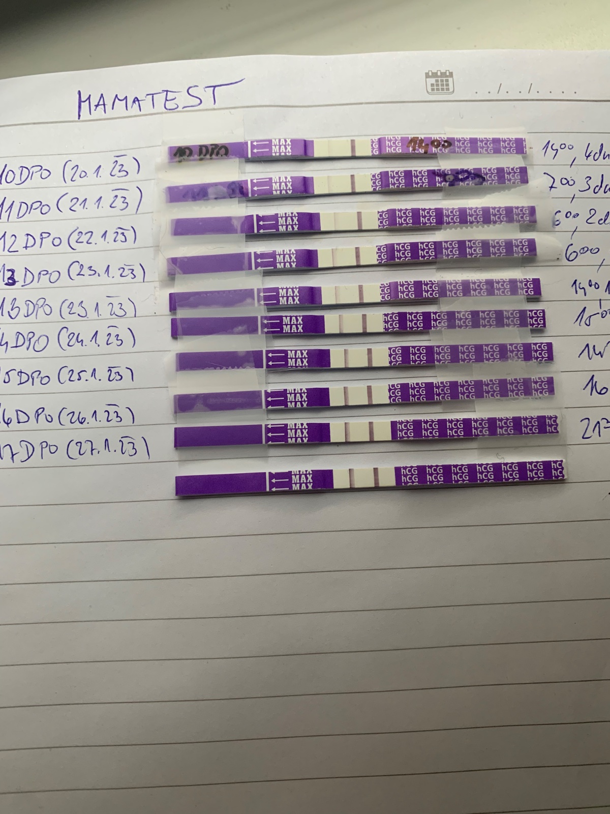 V prvé řadě se vykašli na testování!!! Čárka sílí podle množství barviva v testu, ne podle postupujícího těhotenství. Máš to potvrzené a tímhle stresem si akorát ubližuješ a ničemu nepomůžeš. 🍀