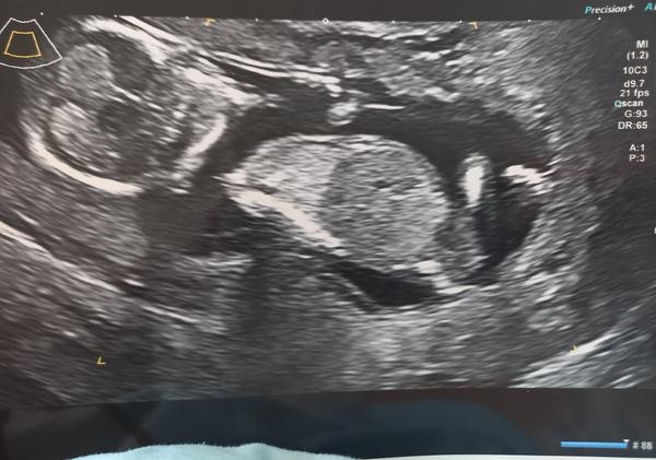 Ahoj holky, jen z mé zvědavosti a především netrpělivosti bych se chtěla zeptat i nestranných osob co vidí na ultrazvuku za pohlaví. Respektivě, co si dokážete odhadnout na základě pohlavního hrbolku. 🙈😅 Je to fotka z prvního screeningu, kde nás pan doktor řekl, že těžko říci, je to má tak půl na půl.