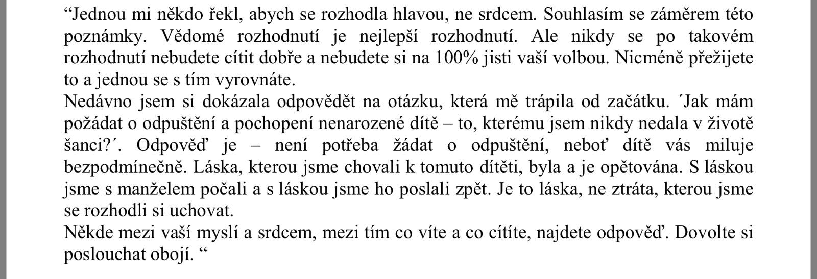 @michaela19911991 Mylím, že ji tu nikdo neodsuzuje, protože ty okolnosti neznáme. Já mám zas z těchhle typů diskusí často pocit, že jakmile někdo vyjádíř nesouznění s potratovým řešením a uvede možná rizika a následky, nebo jiná řešení, tak se do něj zastánkyně dost pustí. Protože doktoři aj. všeobecně uvádějí jen tu růžovou část. A o té psychice se nemluví už vůbec.