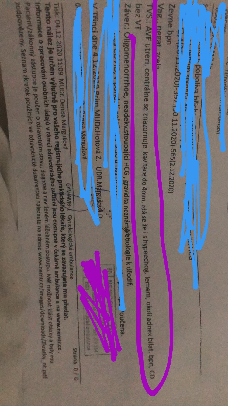 Tak neptala jsem se na tyhle věci co znamenají říkala ze mám přijít v pondělí a buď si mě tam nechají stym ze mám mimodelozni těhotenství nebo ze všechno v poradku