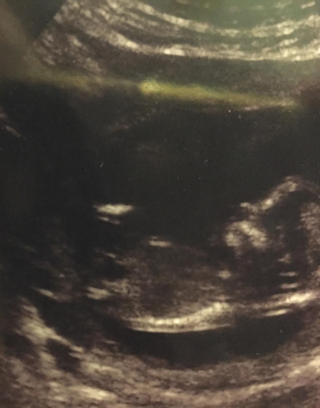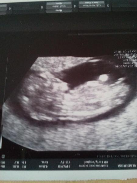 Tohle je prave fotka s 3D, ale na 3D to nebylo vidět, tak je to dělané z 2D. Miminko nechtělo vubec spolupracovat, tak ho sestřička ultrazvukem dost trápila a pak mi ukázala tohle. 😄