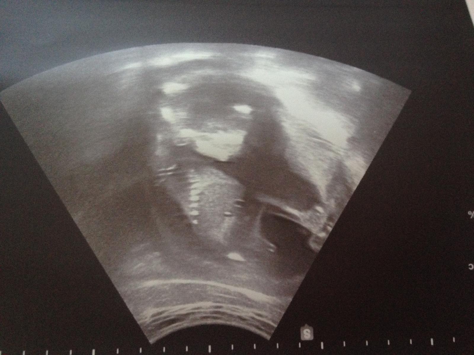 co byste prosím řekli, že vidíte za pohlaví? (nalevo na fotce). Je to 24 týden těhotenství