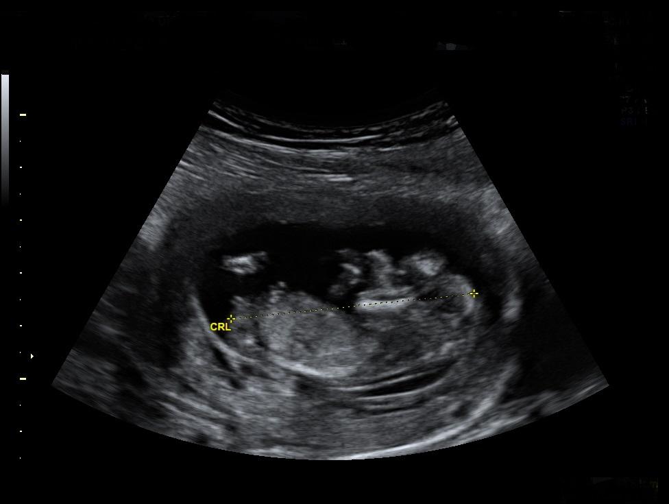 (jinak jak je napsáno CRL tak to je kostrč - na druhé straně pak logicky hlava :D no a nad tím CRL ten výběžek o dvou jakoby čárečkách je ten pohlavní hrbolek na základě čeho se určuje pohlaví okolo toho 12 tt. )