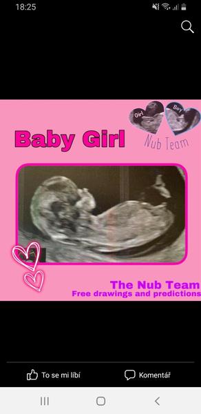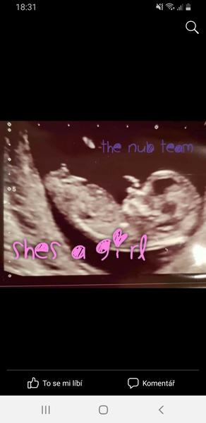 @janagranada na prvním screeningu nebylo vidět vůbec a na druhém to nebylo stoprocentní, fotka co jsem přidávala že z 26tt focena na běžné těhu kontrole, kde Mudr tvrdí kluk, ale mě prostě mate ta fotka no😄 jde tam vidět prostě obojí 😄🤭