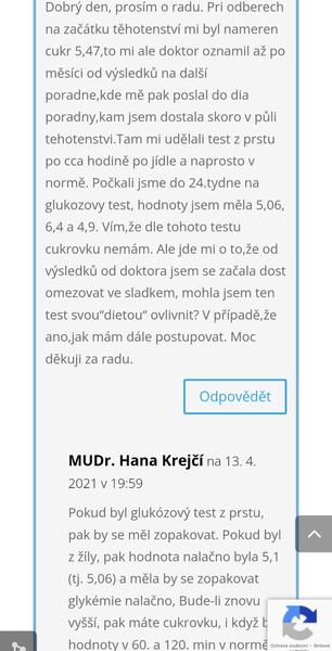 @luna03 To opravdu na ten cukr nemělo vliv. Nejdůležitější je se chovat před testem, jako normálně, jen dodržet lačnění. Pokud půjdeš ještě jednou, jez jak jsi zvyklá. Ale při tvé hodnotě bych už neřešila další test a už držela dietu do porodu.
