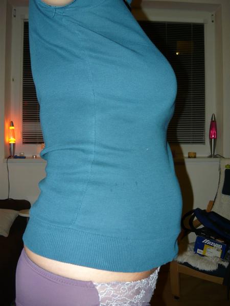 Tak já sem ted 22 tt...Třetí mimi a vždy větší a větší břícho...Já patřím k těm co mají obr pupek a přitom sem spíš drobnější postavy...Tentokrát mám viditelné bříško už od 5 tt ! A k dnešnímu 22 tt mám 8 kg nahoře a přes pupek rovných 100 cm...