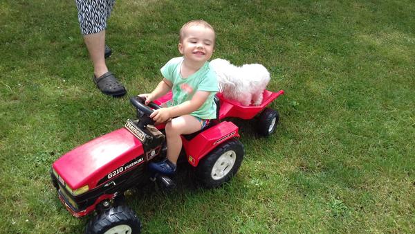 A ještě dodám, že si zvykl i starý pes babi a dědy. ...devítiletá fenka maltézáka. Ona má teda ráda svůj klid, takže když ji syn už otravuje, tak prostě zaleze pod stul do pelíšku. Ale jinak syna miluje.