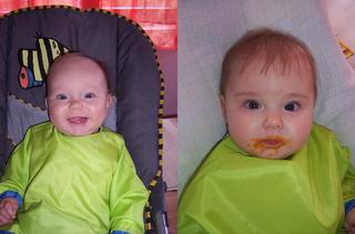 My ted marodime, ja mam nejakou chripku, teploty, kasel, ryma a obe holky maji taky rymu, takze je veselo☹. Anezka mela pul roku, tak jsme zacly s mrkvickou, no moc holce nejede. Hodim Vam sem par fotek. Prvni je presne pul rok holek...pro porovnani🙂
