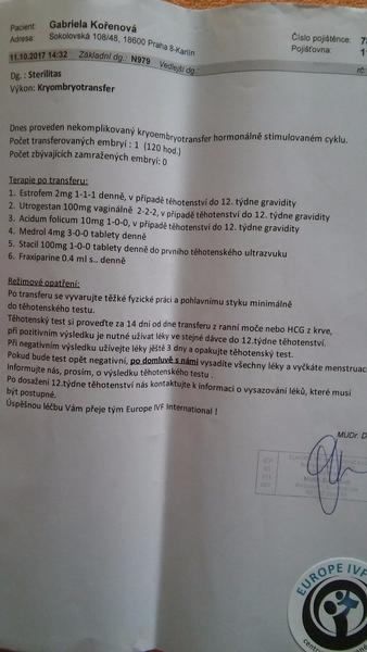 Ahoj mysme to tet podstupovali darovane embrijka dnes jsem druhy den poto predtim jsme byli 3 na umelku v koline pak 2 v praze ivf na praze 5 na darcostvi vajicek a nic a tet jezdime do hradce tak budem tet cekat doufame zese zadari