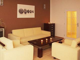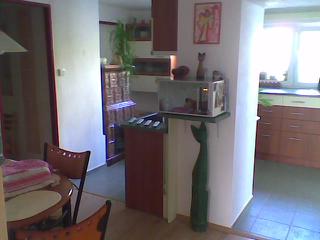 jé, krásně jste mi to natipovaly 😀 tak v tom obýváku jsem tu stěnu hodila do tmavého šafránu, neboli oranžová. ostatní stěny jsou meruňkové, tak to bude snad pěkné. ten nábytek má bílé dvířka a hnědé skříňky, tak by se to v tom mělo pěkně vyjímat. a kuchyn mám v počítači obrázek, tak kukněte. je to focené z té jídelničky.
