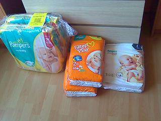 tak dneska jsem dotáhla domů plenky pampersky z dm, mají tam na ně velkou slevu, tak šup, šup pelašte! U nás mají 2x108 za 659 dělá to 3kč na jednu plínku! 😵 Ale byla to tíha se stím tahat, uf!!! 😉